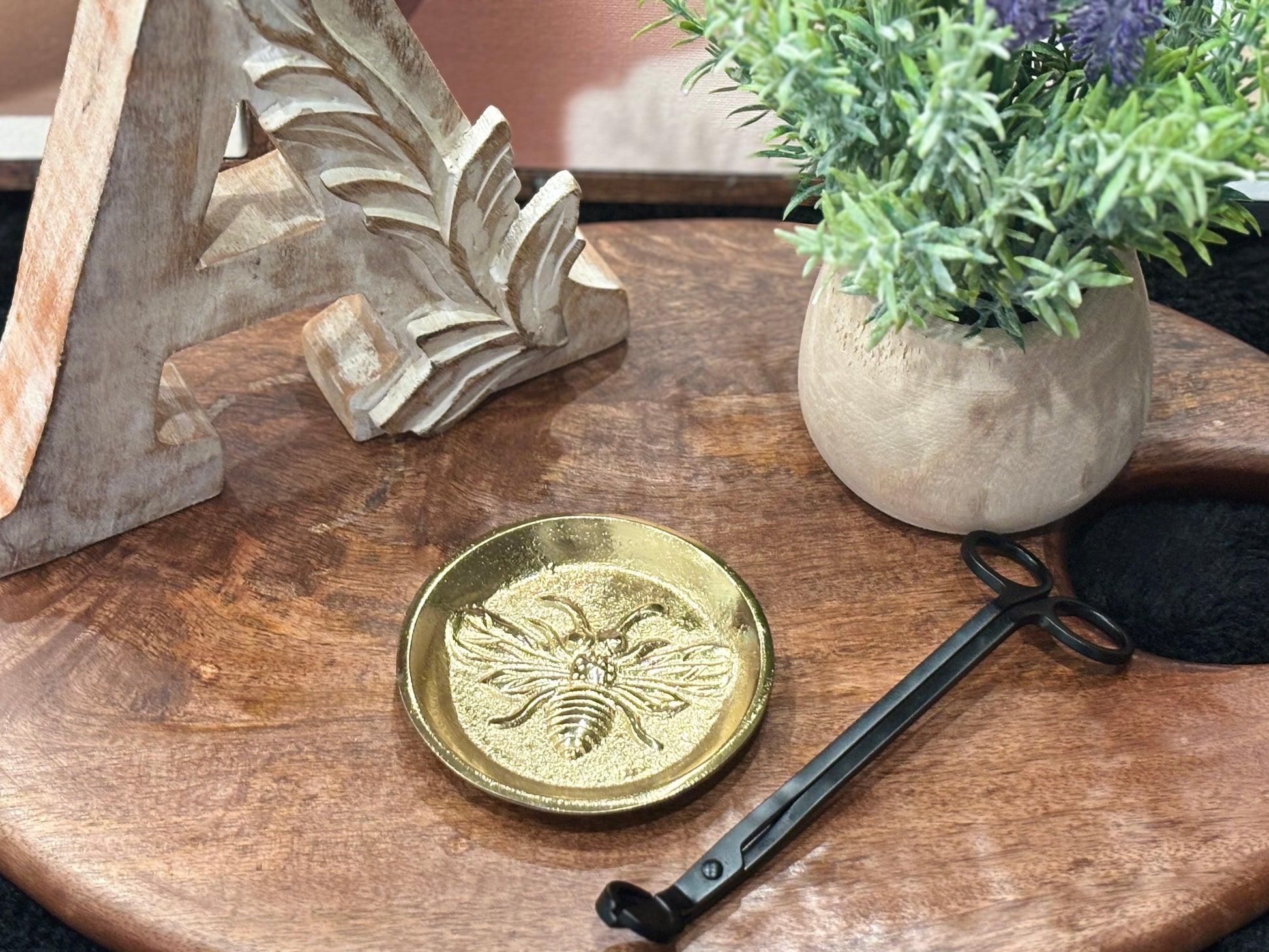 Elevate your candle ritual with this sleek gold tray, designed to add both function and style to your space. Perfect for displaying candles, wick trimmers, and other accessories, this tray protects surfaces while adding a touch of understated elegance.